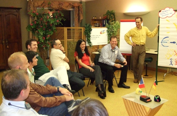 - Une session intensive de 2,5 jours avec traduction simultanée, mise en situation et coaching de cas pratiques des participants, le traditionnel « feed-back des alter egos allemands »… et beaucoup d’humour !