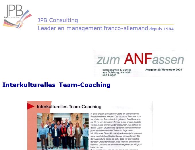 JPB, die Referenz für deutsch-französisches Management – Unsere Coach-Experten sind sowohl Coachs für deutsch-französisches Management, deutsch-französische Mediatoren, Moderatoren deutsch-französischer Workshops als auch interkulturelle deutsch-französische Trainer für deutsch-französische Inhouse- oder unternehmensübergreifende Seminare.