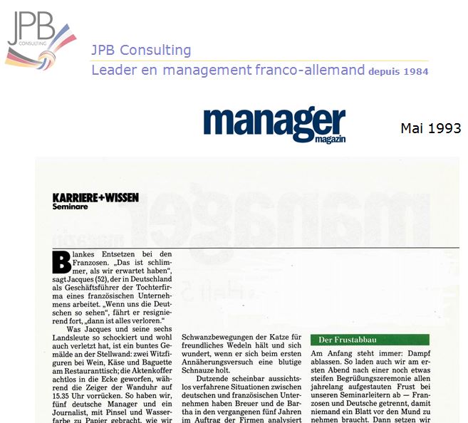 JPB, die Referenz für deutsch-französisches Management– Unsere Coach-Experten sind sowohl Coachs für deutsch-französisches Management, deutsch-französische Mediatoren, Moderatoren deutsch-französischer Workshops als auch interkulturelle deutsch-französische Trainer für deutsch-französische Inhouse- oder unternehmensübergreifende Seminare.